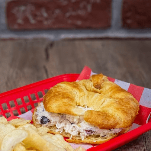 Mama Debbie's Original handmade chicken salad recipe served on a buttery croissant.