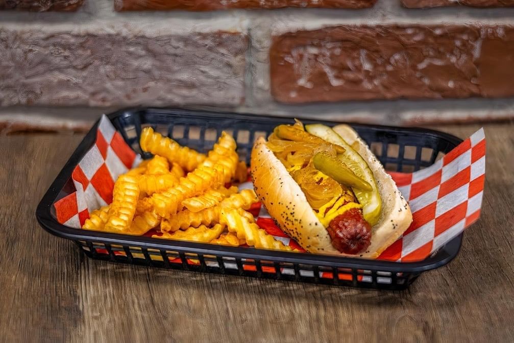 The hotdog that earned us a place in the Vienna Beef Hotdog Hall of Fame! Topped with the classic Chicago 7 toppings; Mustard, Relish, Onion, Tomato, Sport Peppers, Pickle & Celery Salt. *No Ketchup allowed!